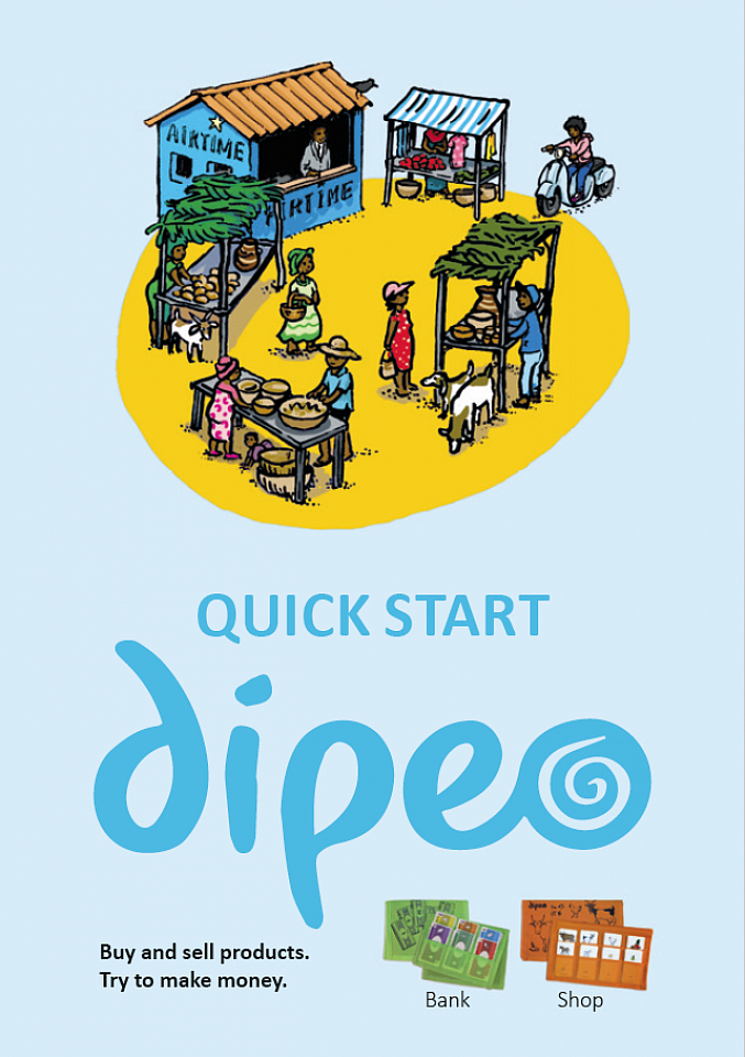 Le jeu Dipeo est rangé dans un sac pratique et robuste, idéal pour le transport et le rangement. Tous les éléments du jeu sont fabriqués dans des matériaux solides. On peut y jouer aussi bien à l'extérieur qu'à l'intérieur, par terre ou sur une table. Le tapis de jeu, les pochettes, les porte-cartes et le sac sont confectionnés dans des tissus résistants et lavables, conçus pour supporter les conditions difficiles.