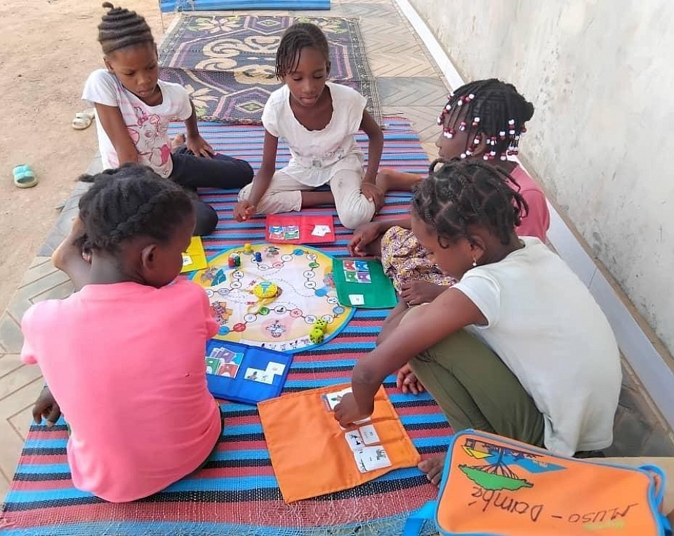 De jeunes filles jouent au Dipeo au projet jeunesse Trax dans le nord du Ghana