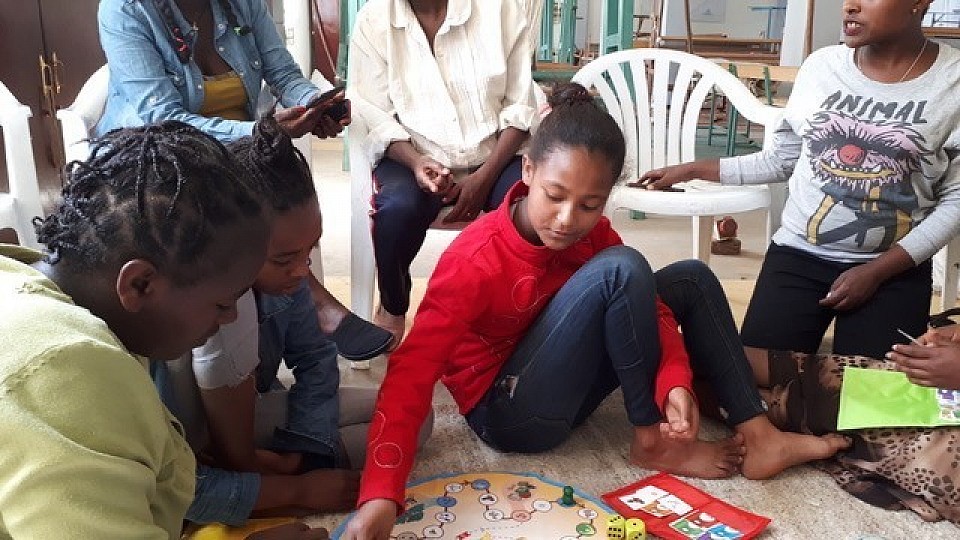 Children. Many of the members in self-help groups are caregivers for children. Even if the women have little schooling themselves, they can play Dipeo with the children and in this way help them to do better at school.